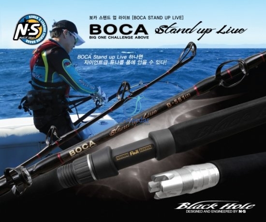 The name BOCA STAND UP LIVE is designed to fit the stand-up approach of fishing, which is designed to allow anglers to fight for long periods of time with a fishing rod plugged into their own fighting belt (harness) to go up to giant-class tuna using live or frozen baits. The blank's features are thin, very resilient, and designed to subdue the giant-class tuna on the principle of soft leverage in the largest bending of the bending that seems to break. This design approach can be mimicked based on the sufficient know-how gained during the design and dissemination of fishing rods for giant-class tuna fishing, which began in 2006, but it is based on an experience that cannot be traced back to the fundamentals. Both vertical jigging fishing using metal jigs and fishing techniques using live bait frozen baits are possible.
